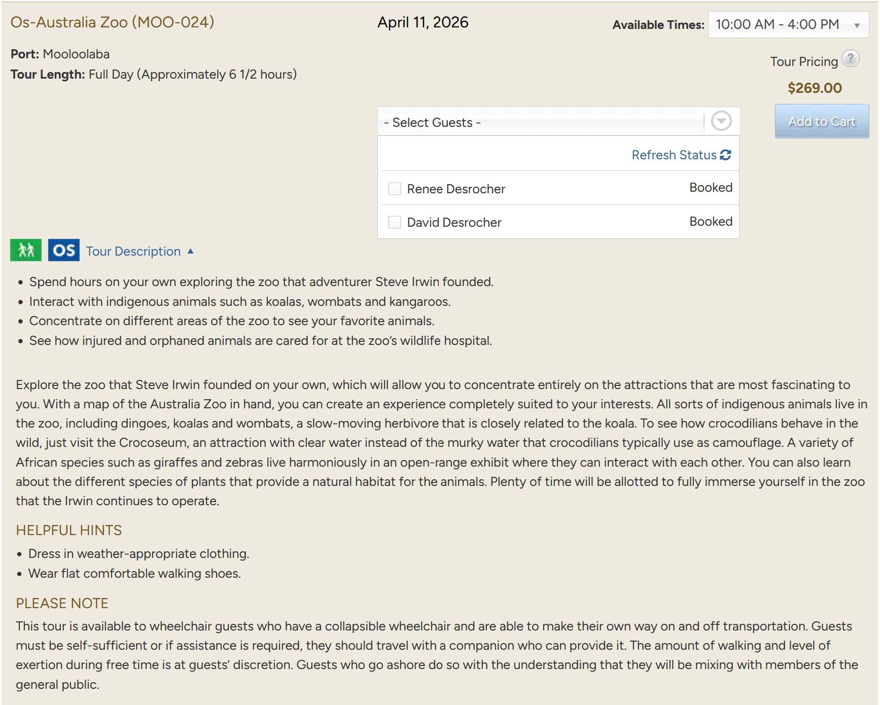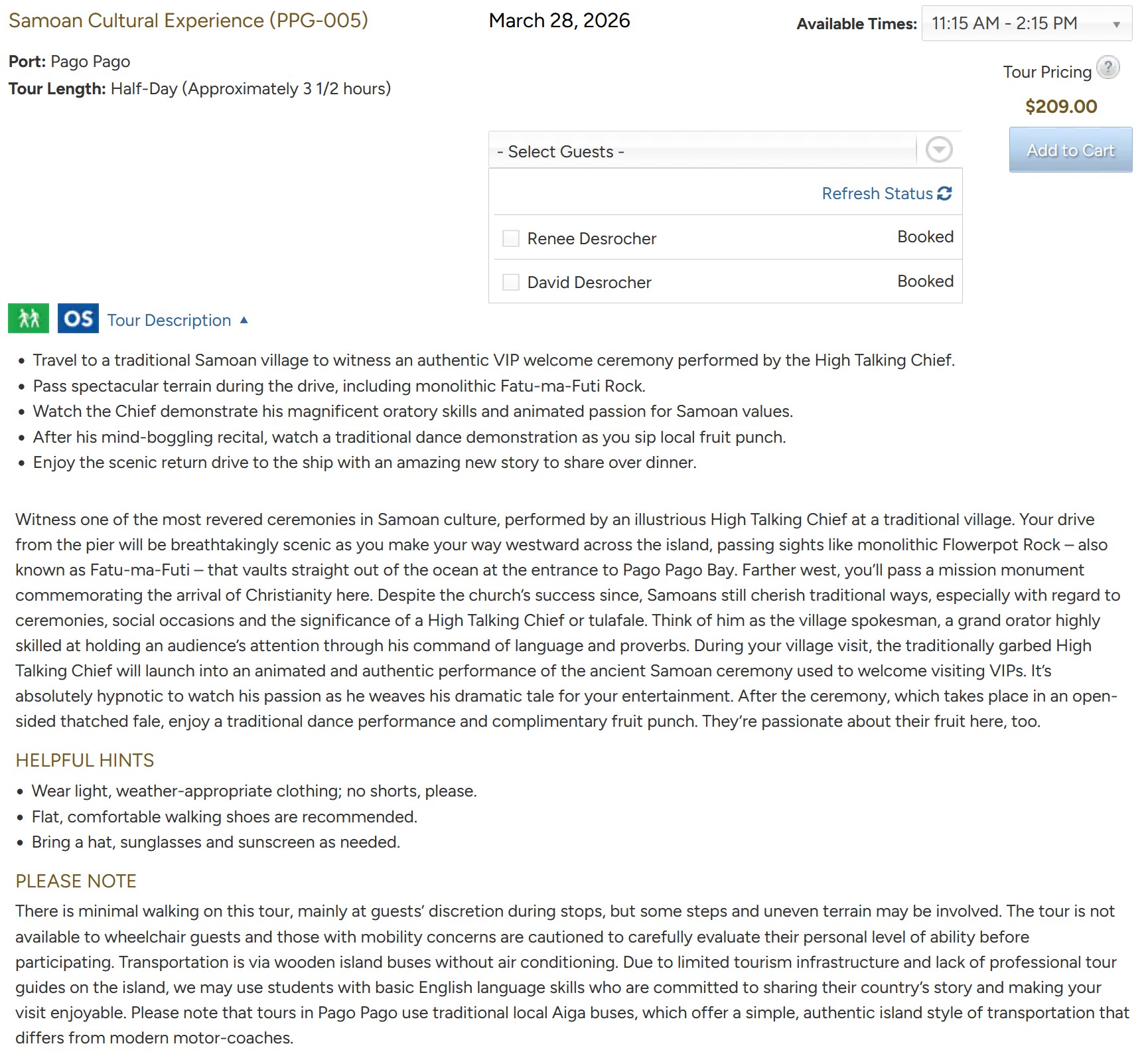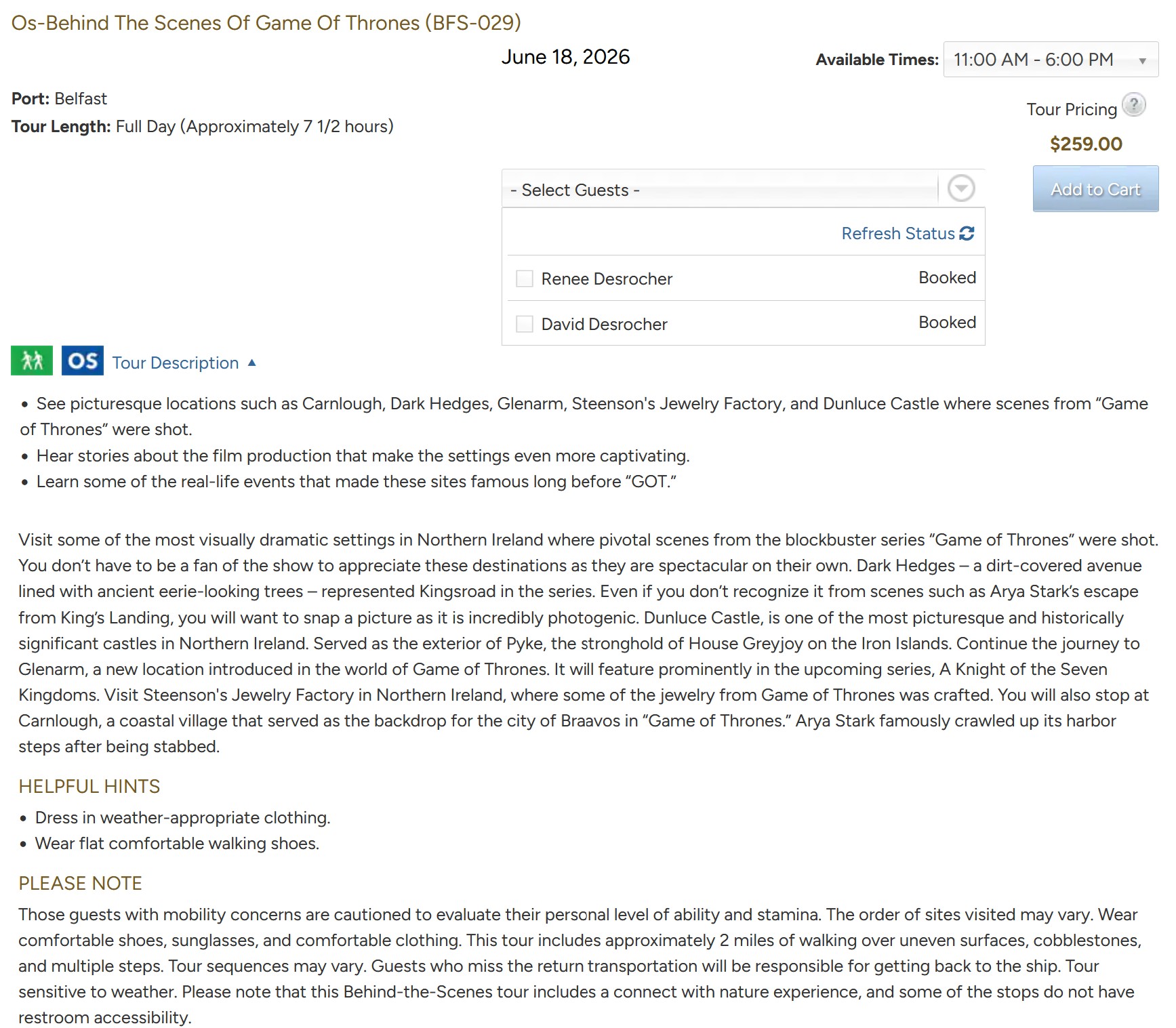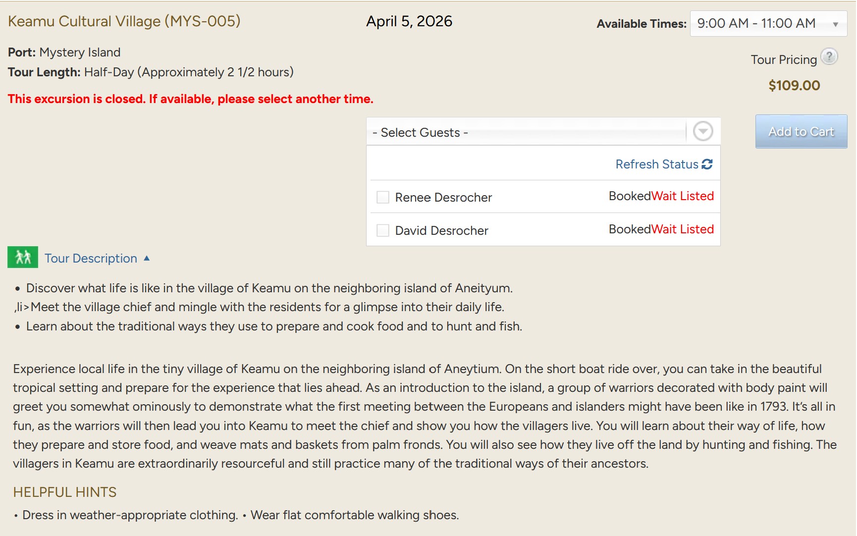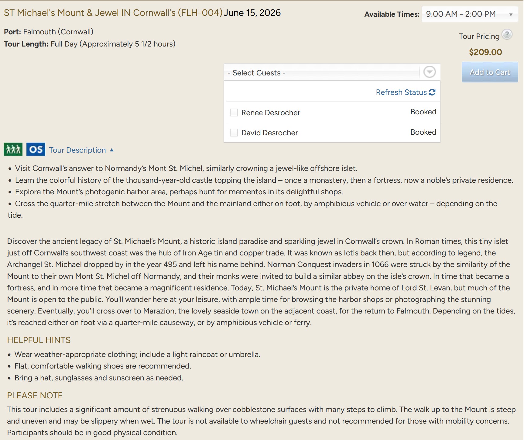 Arrive: 11:00 - Depart: ?