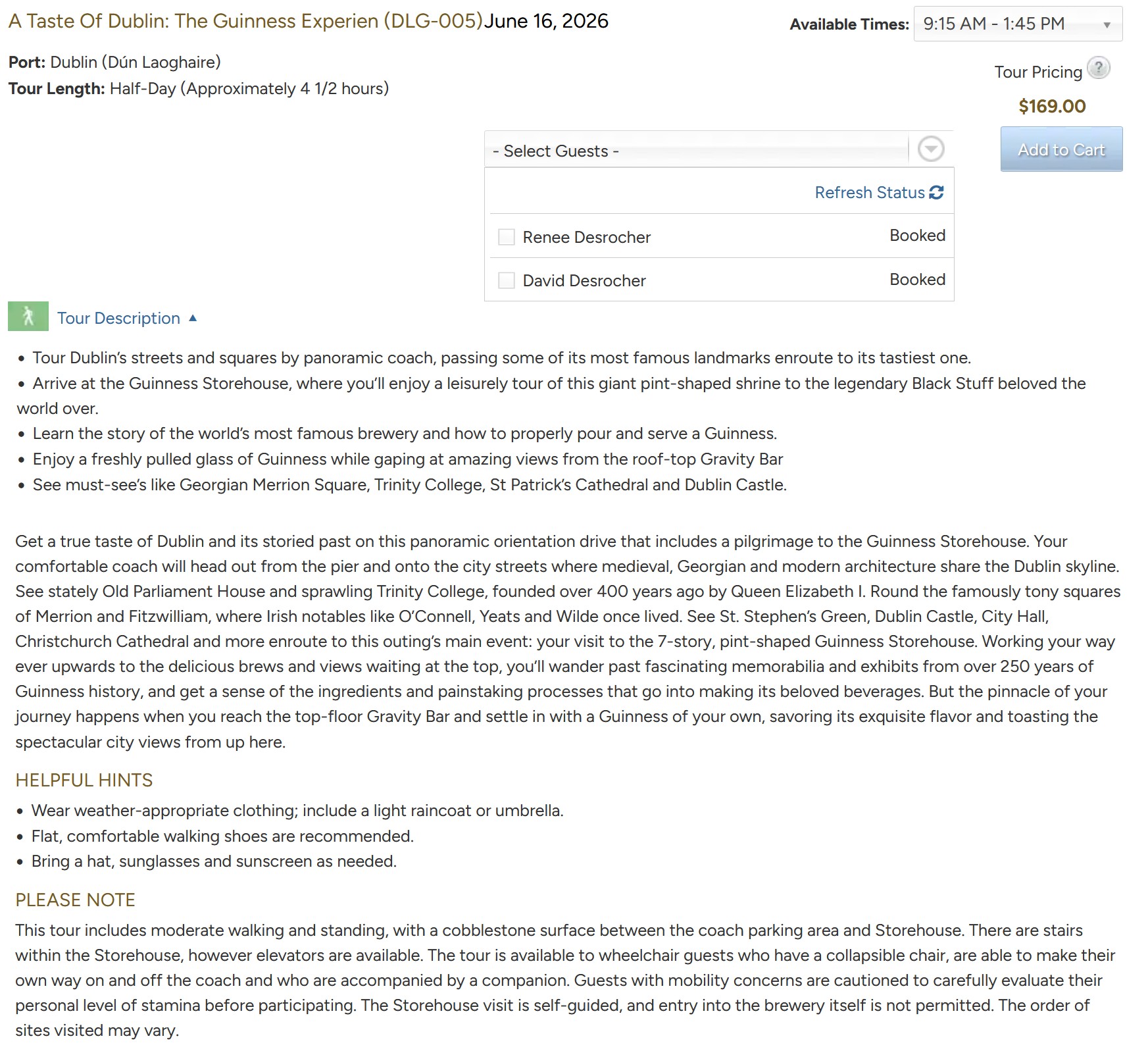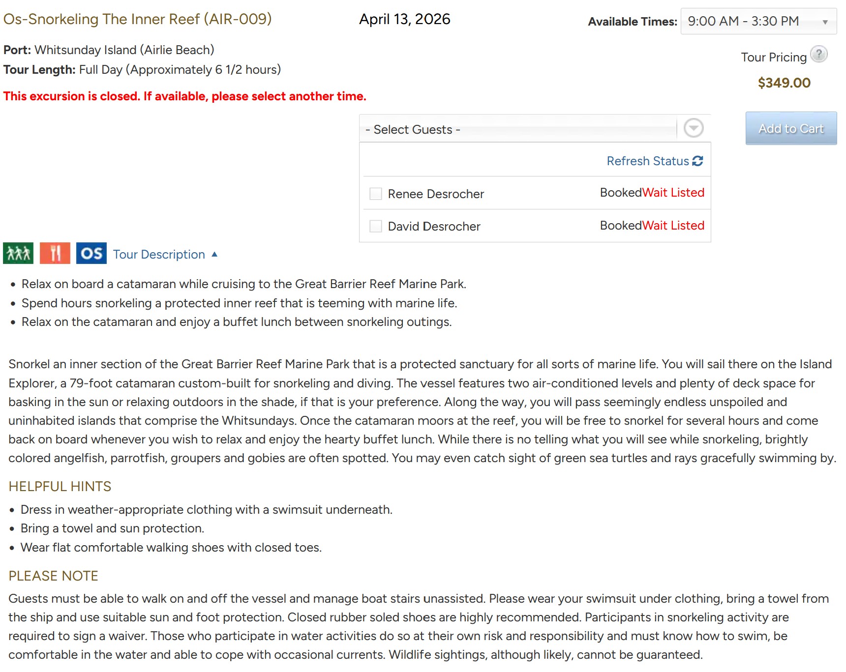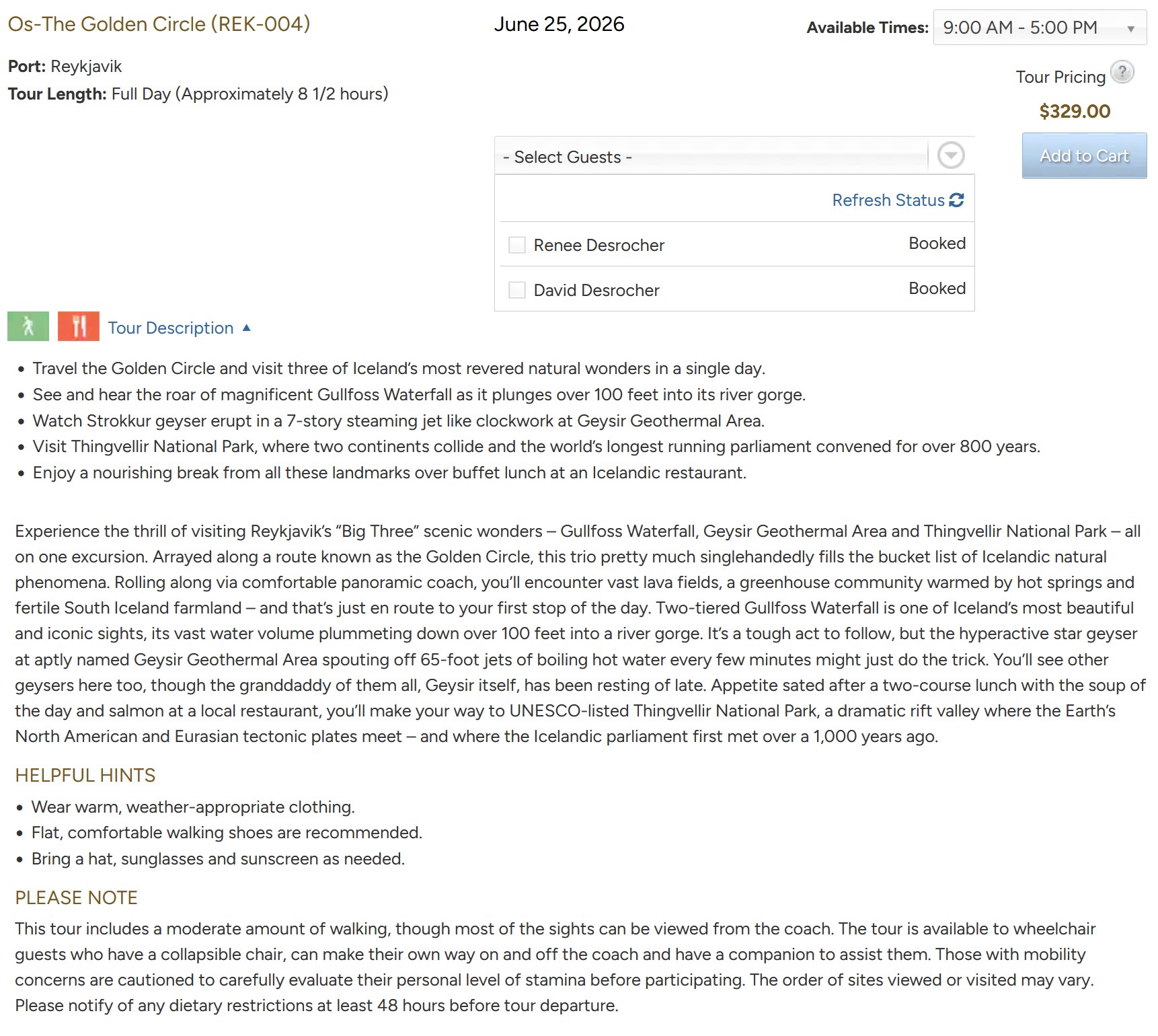 Arrive: 07:00 - Depart: 16:00