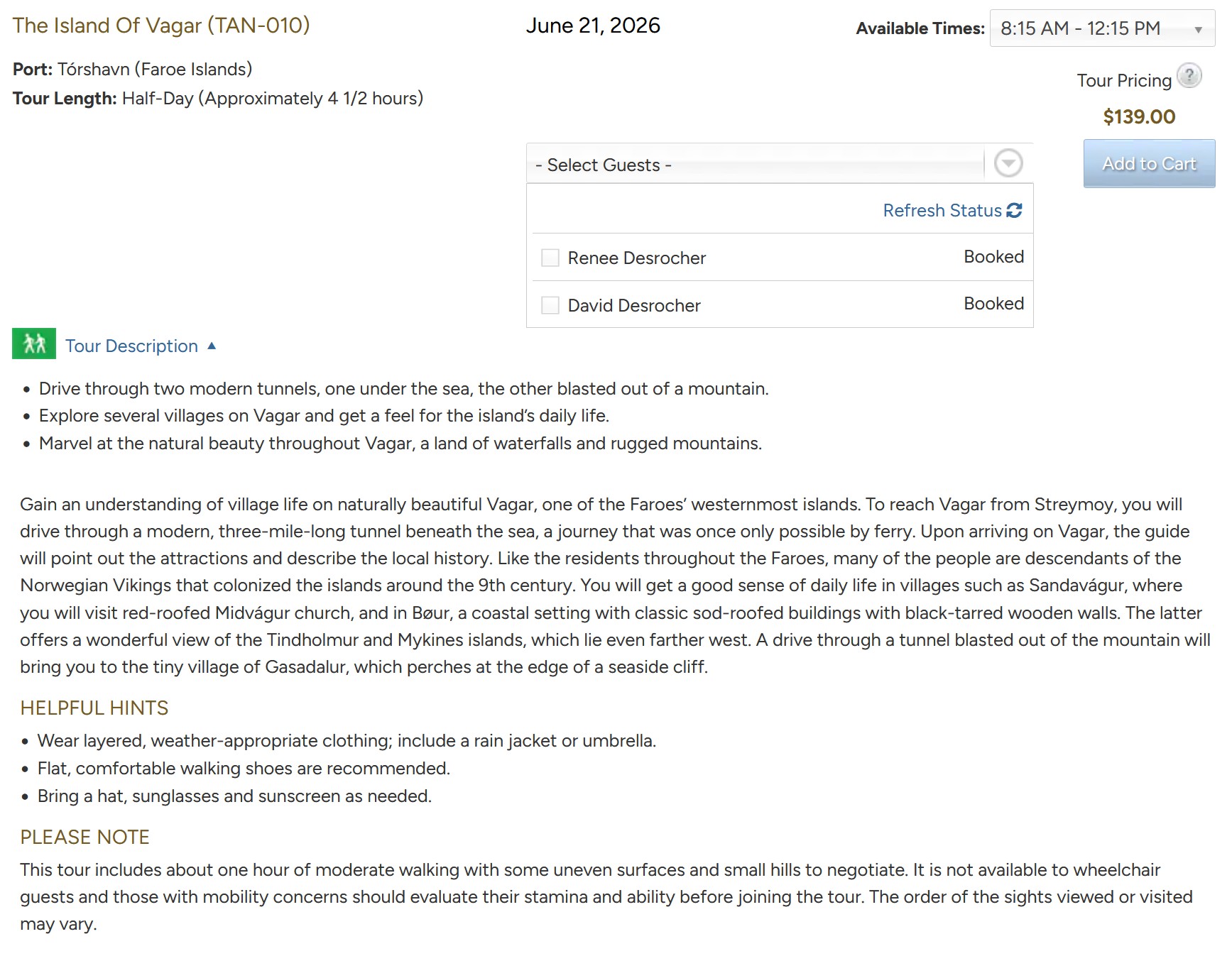 Arrive: 08:00 - Vista Departs: 16:00